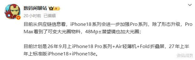 不让友商钻空子, iPhone 18发布时间被曝大幅延后, 应对围攻!